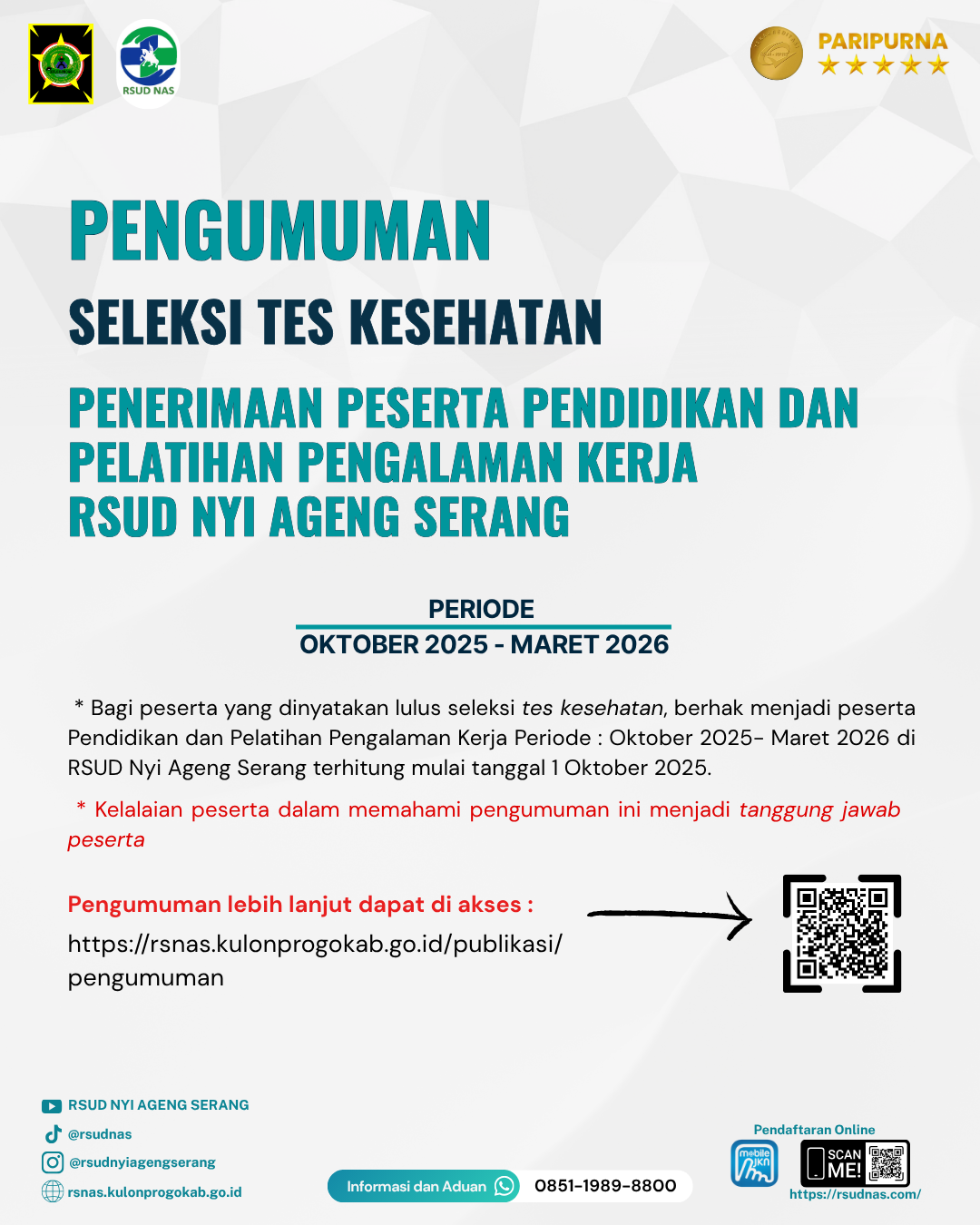 Apabila membutuhkan informasi lebih lanjut dapat menghubungi nomor whatsapp beriku +62 851-1989-8800 (Humas RSUD Nyi Ageng Serang)