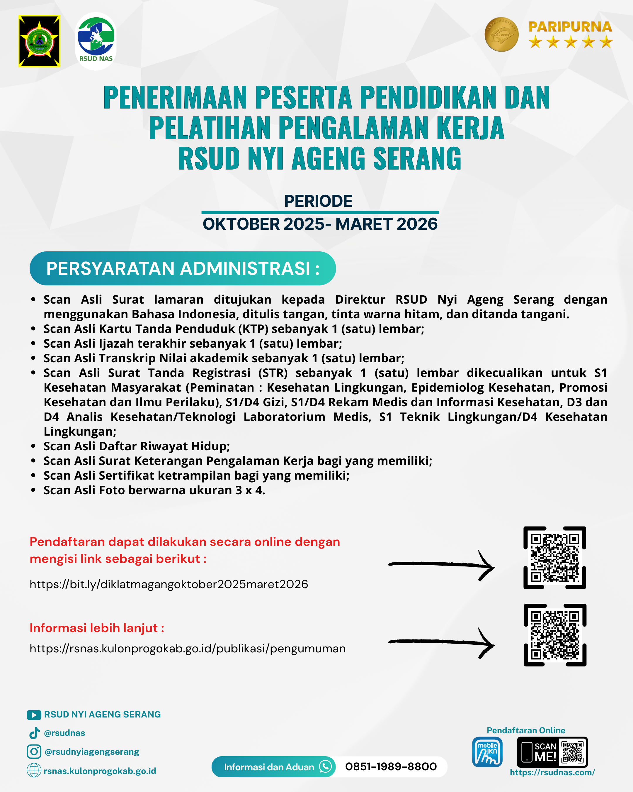 PENERIMAAN PESERTA PENDIDIKAN DAN PELATIHAN PENGALAMAN KERJA PERIODE OKTOBER 2025-MARET 2026